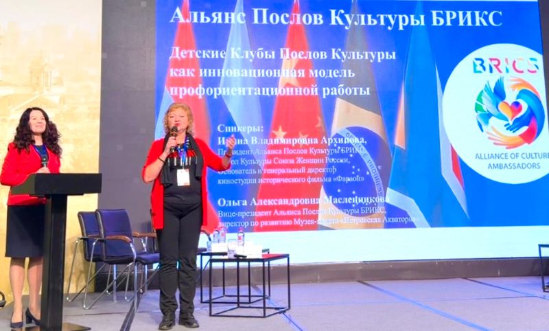 В рамках совместной кейс-сессии с АО «Издательство «Просвещение» «Экскурсии для школьников в системе образования» был представлен доклад «Детские Клубы Послов Культуры как инновационная модель профориентационной работы». Опытом работы в этом направлении поделились Ирина Архипова и Ольга Масленникова , вице-президент Альянса Послов Культуры БРИКС, директор по развитию Исторический Макет "Петровская Акватория", дипломированный профориентолог.